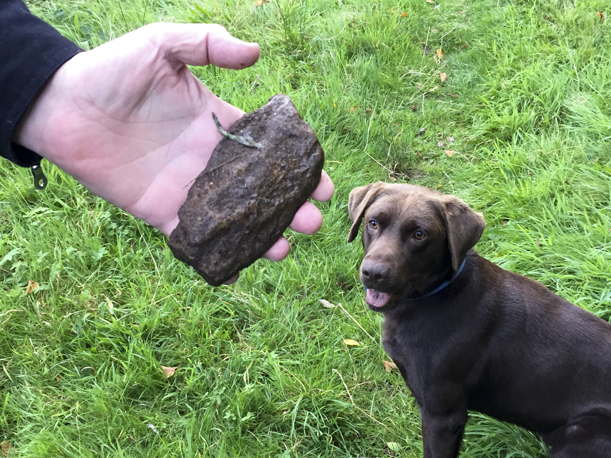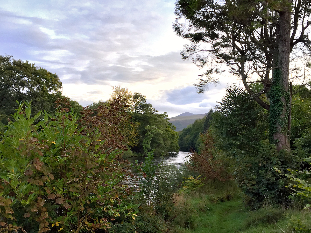 The grounds are quite nice and the River Laune flows close enough to hear the water. I had a couple chances to go fishing in that river (lots of other people were) but never took advantage. We walked down to the river and one of the house dogs came with us. This chocolate lab really wanted to fetch something even if it was a rock. I got tired of throwing it before he got tired of bringing it back. They have three chocolate labs there, one is the grande dame, then this one that only wants to play, and another that is very fat. One day we were getting in the car to head for the golf course and one of the golfers asked the owner if he ever took his dogs hunting. He laughed and said, “I don’t know what you’d hunt with these dogs – maybe tennis balls (referring to the playful one) and this one (the fat one) – he might be good at hunting sausages.” We all thought that was hilarious – and from that point on, we called those two dogs Tennis Ball & Sausage.