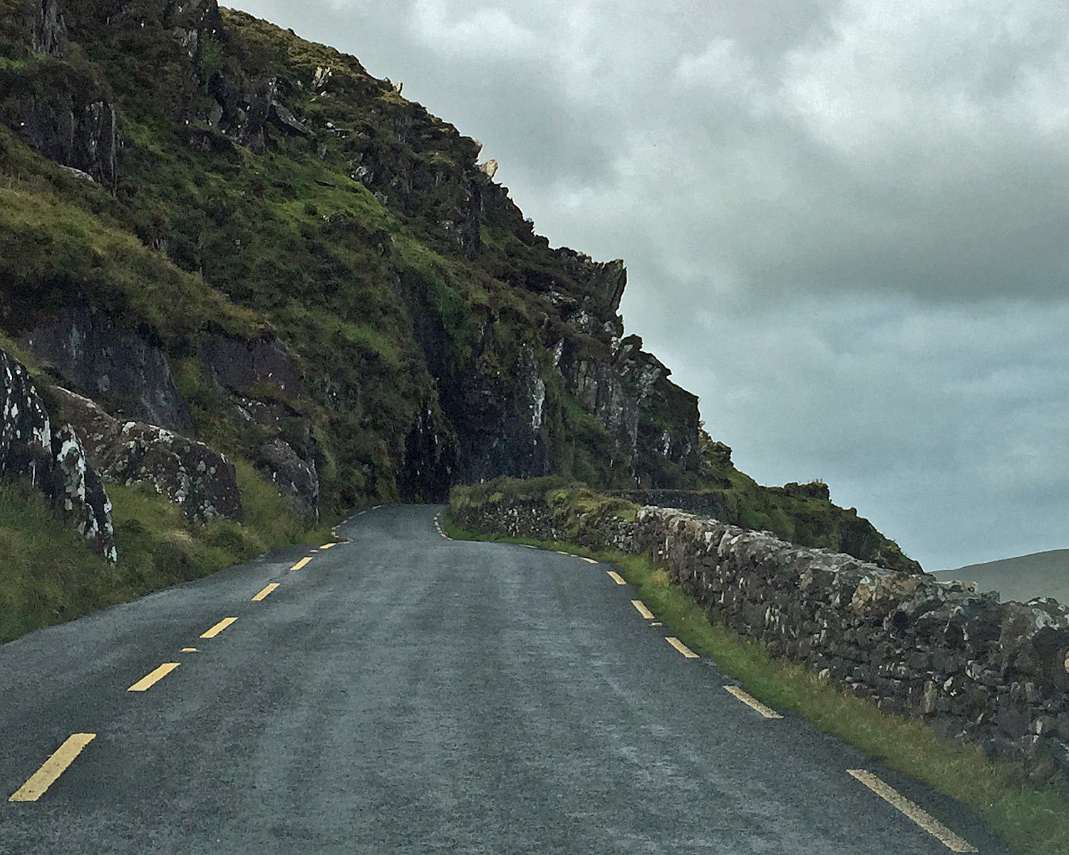 The roads in Ireland are crazy. Not only are you trying to deal with driving from the passenger seat you’re also having to navigate many two way roads so narrow that there is barely room for one vehicle. Lots of vehicles in Ireland have broken side mirrors. I will tell you this – it is NOT for the squeamish; many people prefer to travel via tour bus. The road below the dreaded Connor Pass road. it is one of the most treacherous in Ireland, of course we HAD to go check it out – steep and narrow to be sure.