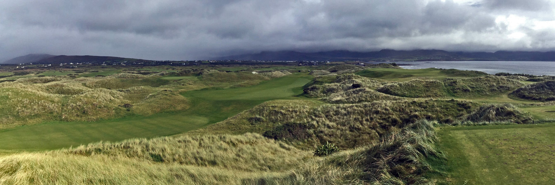In the 18th century the celebration of Mass was punishable by death in Ireland, forcing the local population to use this secluded valley to hold their services. The original plans for the links design called for a green to be placed in this hidden valley. However, the local workers declared the area sacred ground and refused to disturb the site. A compromise was reached with the green being placed on the hillside overlooking “The Mass Hole.” Recently the original owner of Waterville Golf Club died. They held very private services for him – right here.
